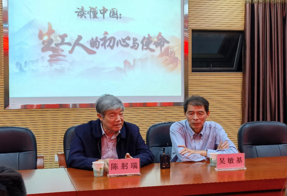 4月14日晚6點半,生物科學與工程學院“讀懂中國——生工人的初心和使命”座談會于院辦225順利舉行。本次座談會邀請了我院退休老教師陳躬瑞老師及吳敏基老師擔任主講嘉賓,院黨委曹仁秋副書記、院團委書記周越及學院入黨積極分子學生代表參加了此次專題座談會。