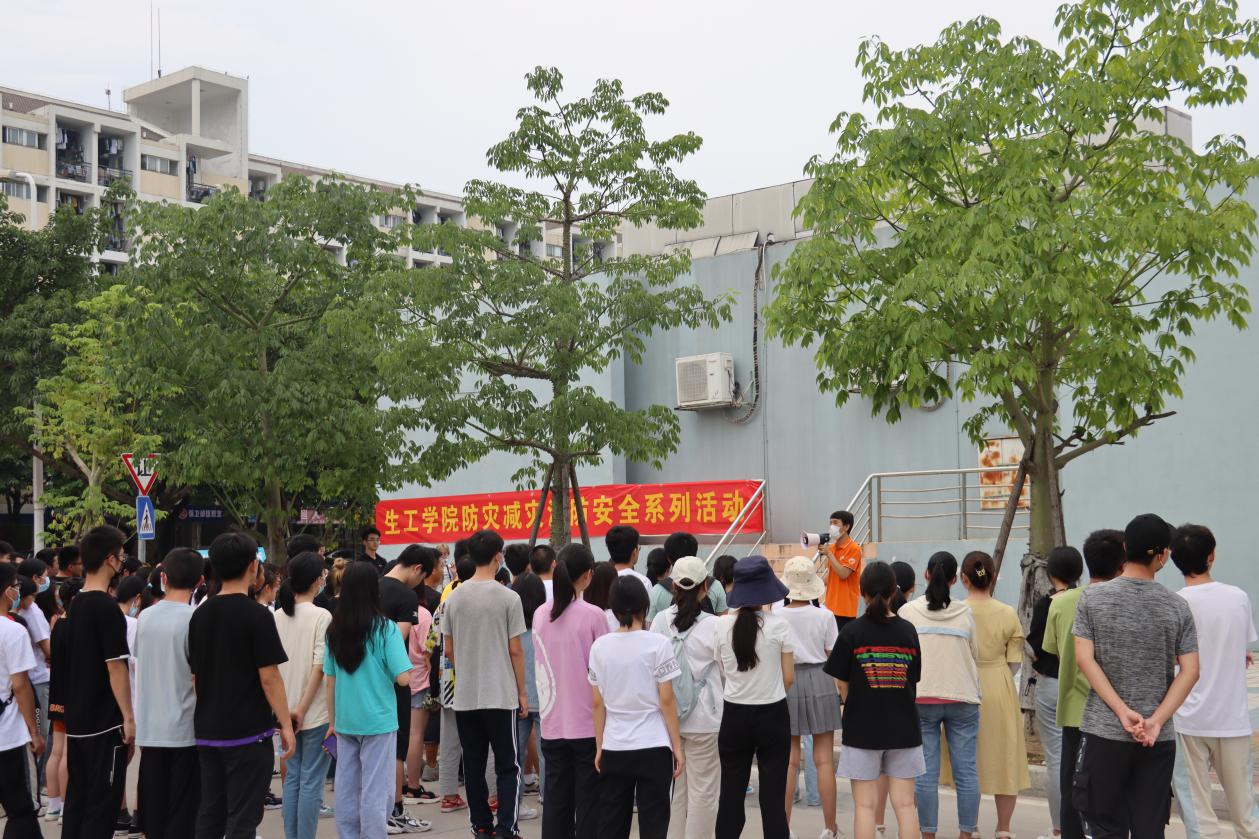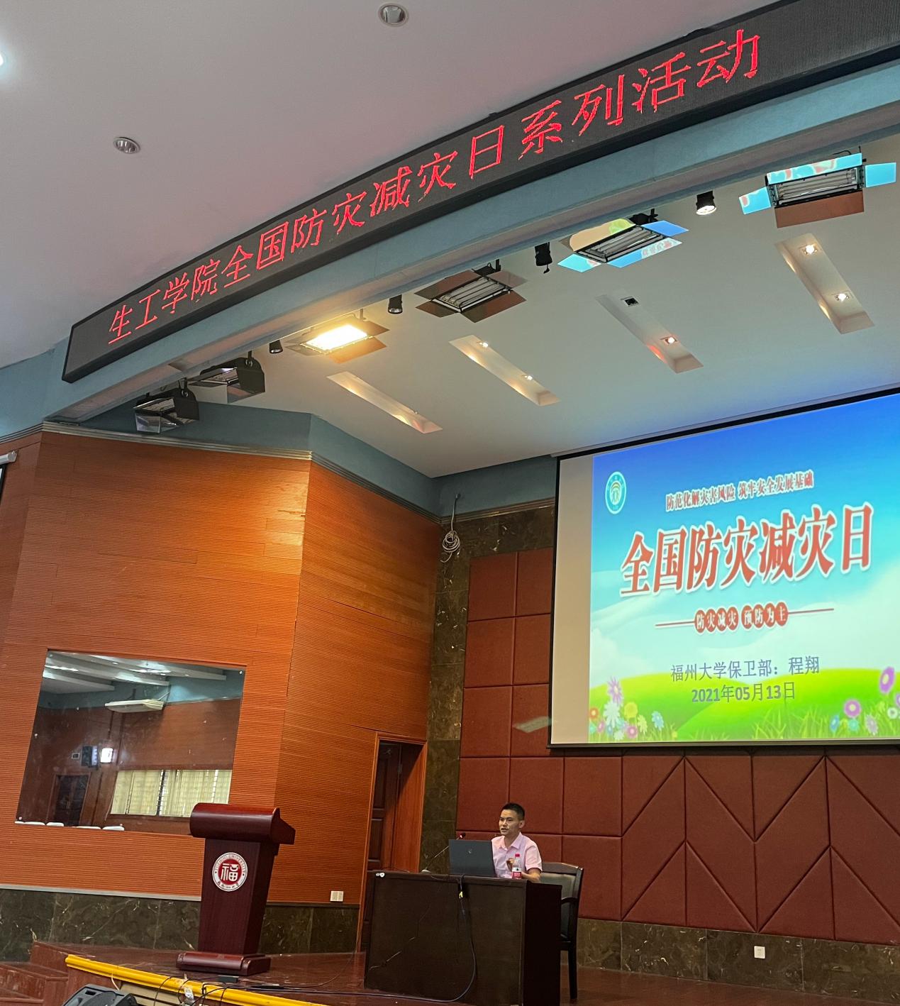 當天下午三點,隨著緊急疏散哨聲的吹響,本次“全國防災減災日”主題教育活動拉開帷幕。同學們在聽到應急哨聲后迅速、有序、安全地從宿舍撤離,在規定時間之內按預定的疏散路線撤離到空曠的青春廣場避險。緊接著,由學校保衛部彭桂平老師組織演練了使用干粉滅火器滅火的流程。在工作人員的指導下,同學們逐一對裝有燃燒物的鐵桶進行滅火操作。隨后,保衛部程翔老師在嘉錫廳為同學們進行了“防范化解災害風險,筑牢安全發展基礎”主題的講座。他從增強防范意識、加深險情認知、提高自救技能、保障校園安穩等四個方面,通過豐富的案例系統介紹了我國防災減災工作的發展歷程和各類自然災害的應對方法。并結合學校實際情況,從火災、地震、臺風等災害防范的角度進行了詳細講解。最后,我院輔導員廖加煒老師對此次活動進行總結。肯定了此次活動的意義,希望同學們牢記于心,在以后如果面對真正的災難時能夠沉著冷靜,靈活運用今天學到的知識保護自己。