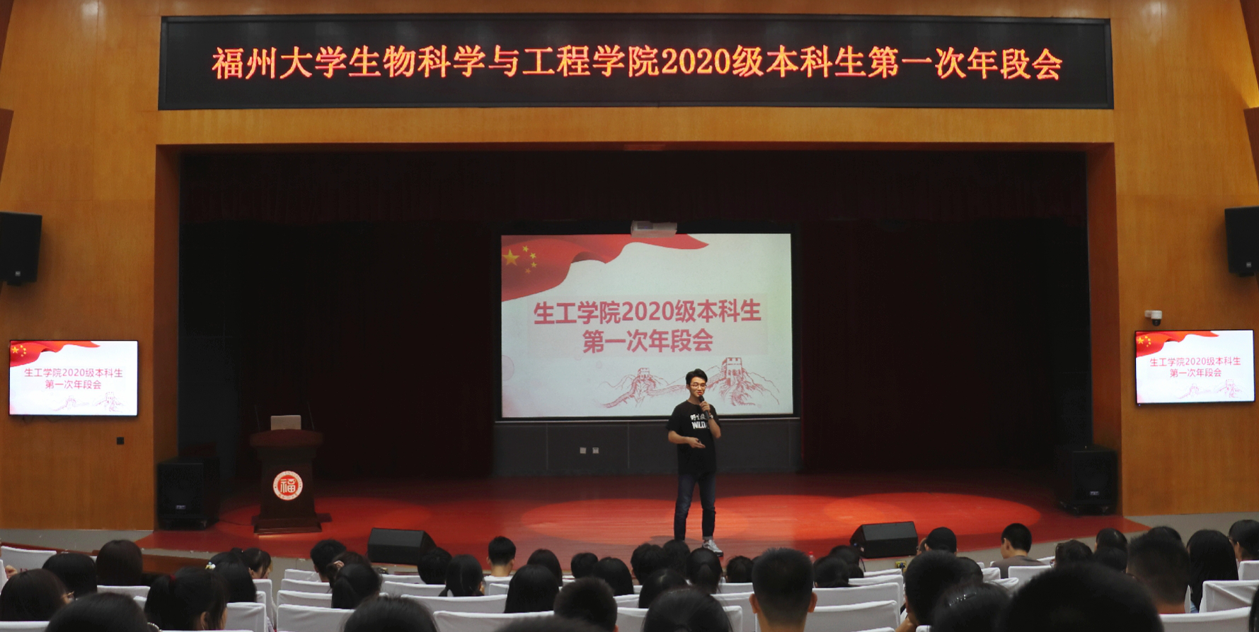 2020年9月22日,福州大學生物科學與工程學院2020級新生第一次年段會于圖書館明德廳順利召開,本次年段會由2020級新生輔導員廖加煒老師主講。