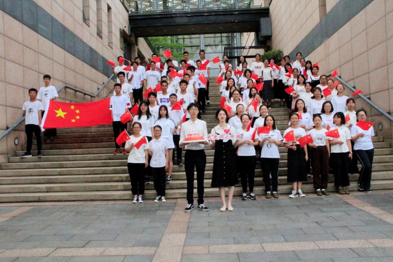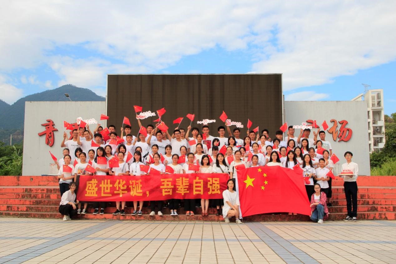 國慶當天早上,19級部分新生于圖書館前的階梯上排列成“70”字樣隊形,為祖國深情獻唱《今天是你的生日》,祝我們偉大的中國70年歲生日快樂。合唱結束,合唱的同學們在國旗下留下了難忘合影。