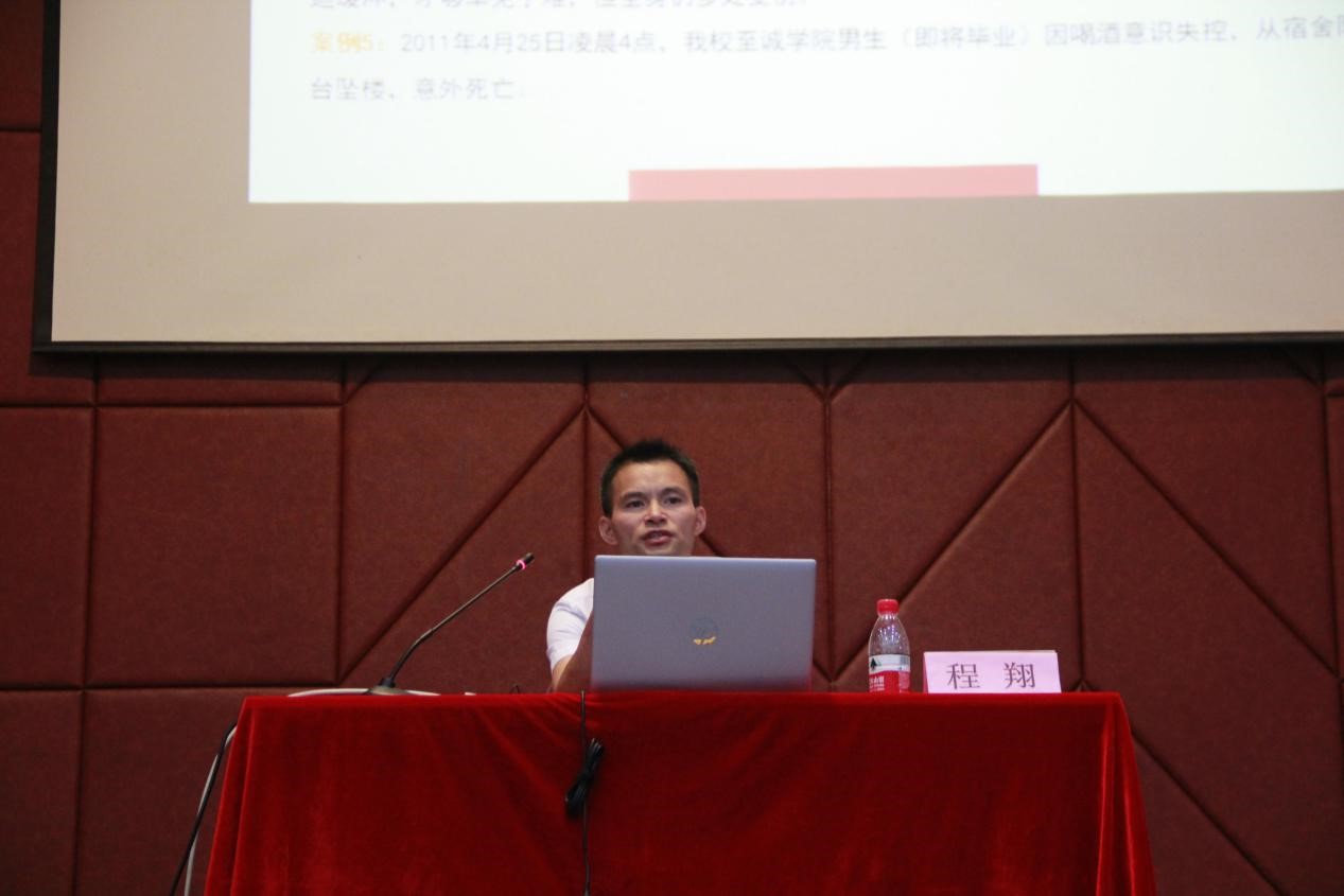 程翔老師圍繞大學生的學習生活特點,結合近期社會、學校發生的一系列安全事件,以案釋法,分別從財產安全、人身安全以及國家安全三個方面對同學們進行了較為全面的法制安全教育。強調了作為在校學生應注意防盜竊、防詐騙、防校園貸等,不輕信不貪婪,遇事應冷靜處理,需要幫助時應及時向輔導員或保衛部等有關部門咨詢。