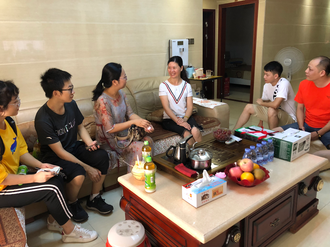 之后家訪隊伍又來到了許銘浚同學的家中,許銘浚同學的父母熱情地接待了隊伍,為大家準備了豐富的水果和飲品。隨后林婧燁老師與許銘浚家長交流許同學在學校所做的學生工作、學習情況和在校表現。許銘浚家長提到,許同學較內向,但自律、努力,并且感謝老師在校對于孩子的栽培和教導。