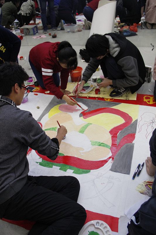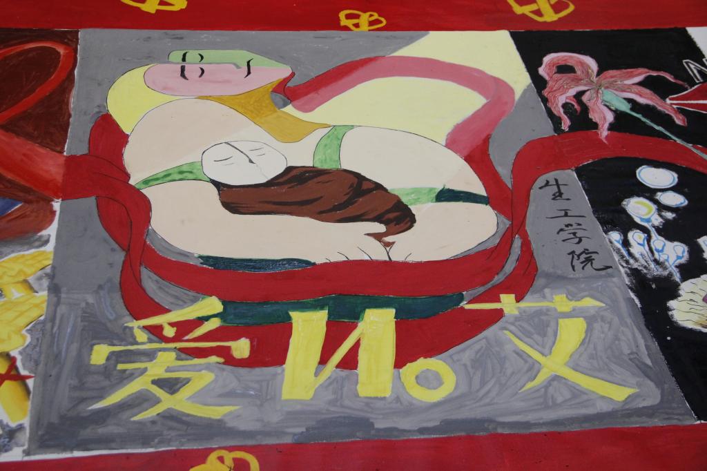 生工紅十字會會長鐘俊華、宣傳部部長陳敏芳帶領部員一起完成此次活動。比賽現場參賽人員分工有序,全神貫注地投入作畫之中。據解說員介紹,畫作主體表現的是一個身患艾滋病的懷孕母親。一半紅一半綠的臉表現她喜憂參半的內心。在母親腹部的上方一束光照耀著胎兒,胎兒的周圍飄揚一條紅絲帶。畫作表達人們對胎兒的期待與關愛,傳達人們對生命的呵護與尊重。