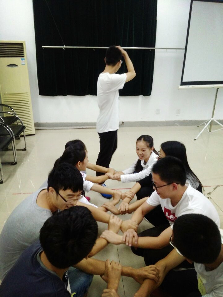 活動開始前,主持人以及黑框工作室的助理組織大家在紙上寫下自己的名字并貼于身。緊接著主持人讓大家圍成一個圈,由主持人帶領所有的參與者開始玩游戲,游戲分為“愛的抱抱” “搭橋”、“Amazing Feet”、“拍數字”四個部分,其中“愛的抱抱”將大家分成了兩隊,分別為敢死隊與喵喵喵隊。搭橋活動中8個人搭橋,1個人從橋上過去,要從指定的起點到終點,這個游戲充分體現了團隊之間協作的重要性;而“Amazing Feet”不僅要求團隊協作,更重要的是任務的分配以及對游戲方法的思考。各階段游戲結束后,大家分享了游戲獲勝的經驗及失敗的教訓。