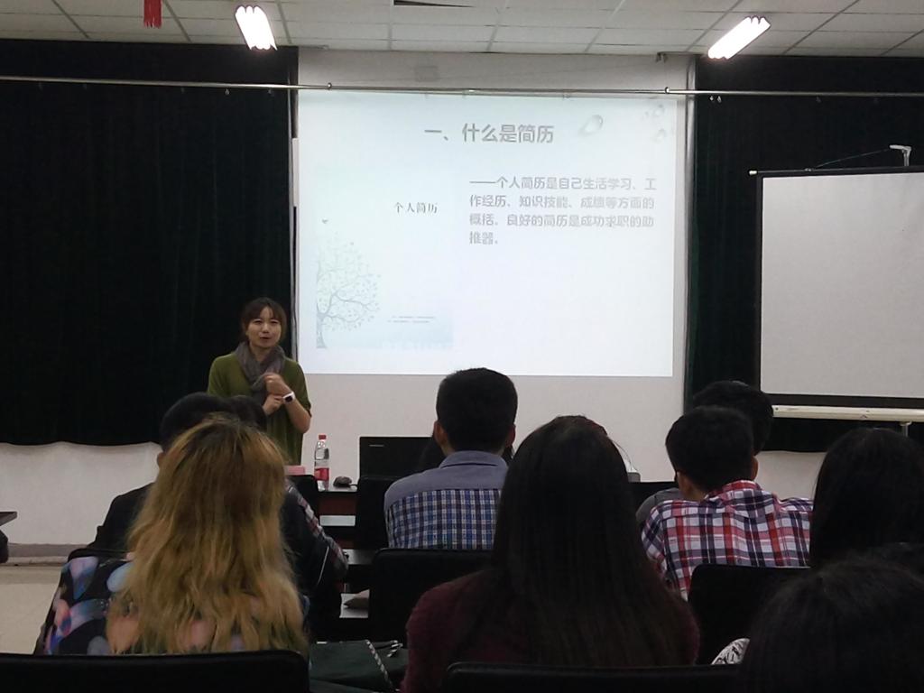 講座中,汪靜筠老師運用多個生動形象的比喻,列舉多個所遇案例,以風趣易懂的方式進行講述,在場學子所獲頗豐。此次講座結束后,同學們持已制簡歷向老師咨詢修改,融洽的溝通交流氛圍為本次講座畫上圓滿句號。