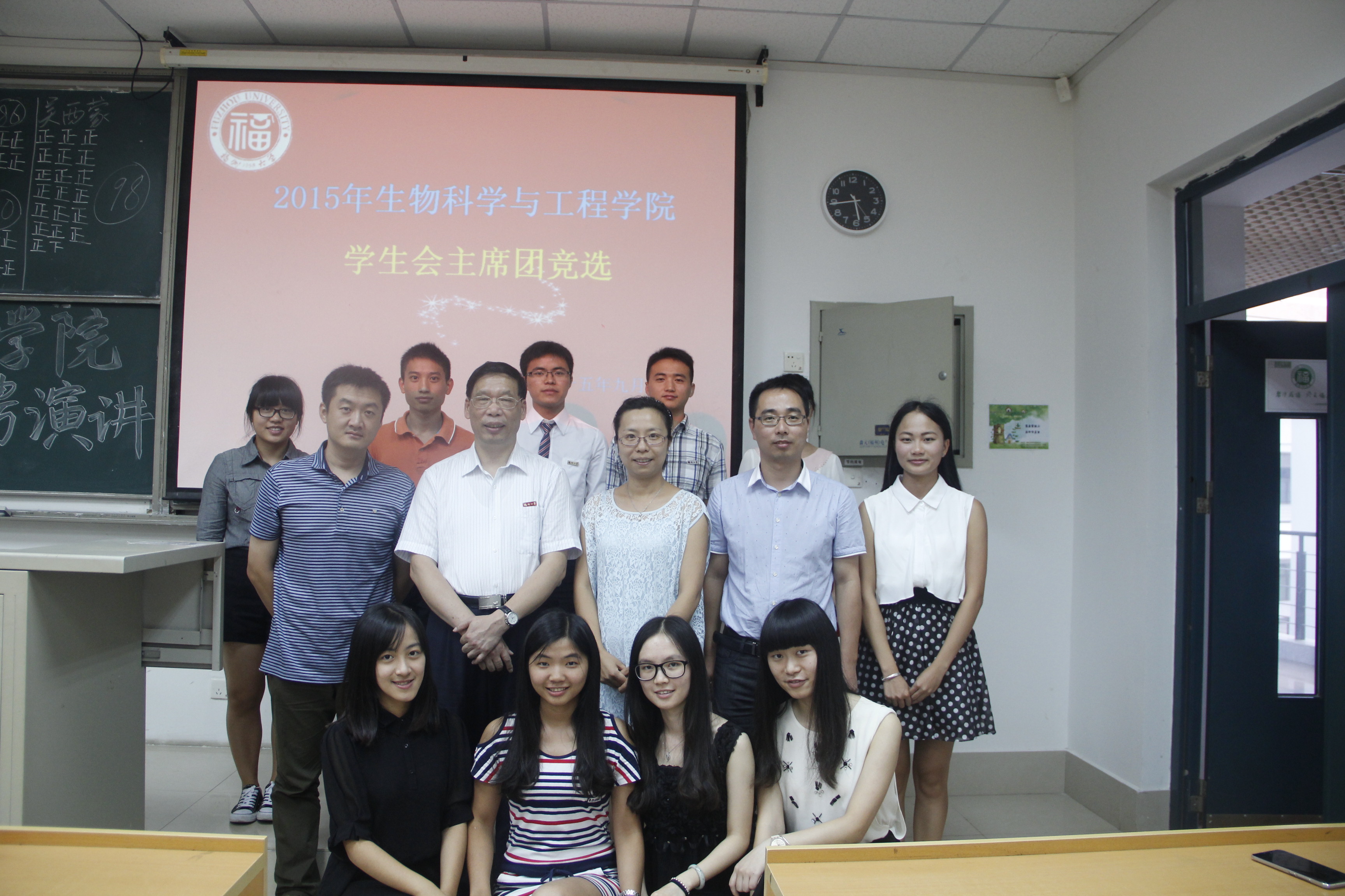 9月10日下午,生物科學與工程學院在西二301舉行2015屆主席團競聘演講。生工學院黨委副書記鄭延平,團委書記周越,輔導員陳育芳以及林婧燁老師出席本次演講。本次演講由宣傳部祖力胡馬爾主持。