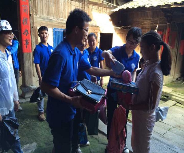 下午三點,實踐隊隊員提著大袋小袋的物品來到了方家山村幾處散落的農戶家中。這些物品均為書包、臺燈、衣鞋等生活用品,由生工學院學生捐贈。在當地居民的指引下,實踐隊來到了村里困難戶的家中。走訪的第一戶人家有兩個小孩,家中還有兩位老人,居住的木房雖然很大,但是生活用品很是短缺。實踐隊隊員與老人親切地交流著,詢問他們的生活情況,并受到了老人熱情的招待。當實踐隊隊員將嶄新的書包、電暖寶及卡通錢包遞給孩子的時候,他們很禮貌地說了聲謝謝并露出了欣喜的笑容。接著,實踐隊隊員又走訪了另外幾戶人家。當地居民說,這邊發展的主要問題是勞動力不足,由于村里的農戶本來就少,還有一些村民去外地務工,所以生產的產品產量少,常常供不應求。但是他們相信,在羅維銓書記的帶領下,隨著開發山林的幾個項目的落實,其良好的前景會吸引著越來越多的農戶加入進來。