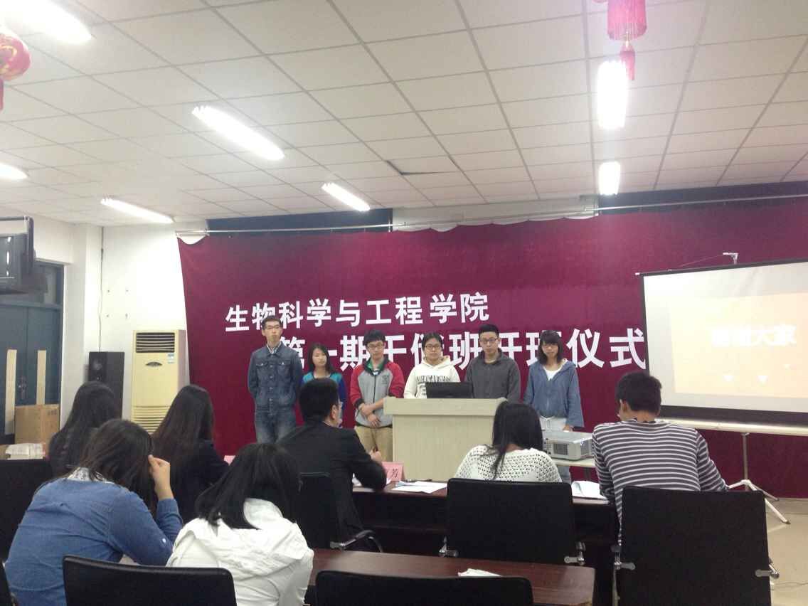 在經過兩周的干儲班培訓后,生工學院于5月5日晚在嘉錫樓二樓會議室順利舉辦第一屆干儲班成果匯報暨結業典禮。出席本次活動的嘉賓主要有生工學院13級輔導員陳育芳、學生會主席陳佳瓏等。