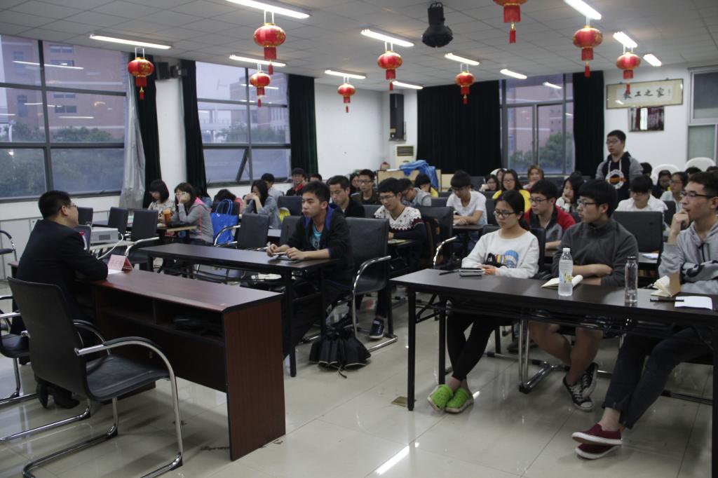 在課堂上,孫正偉老師重點從三方面詳細闡述了大家應如何去做一名優秀的學生干部。首先他講到大家要對學生干部有一個明確的定位,正確處理學習與工作上的關系。即要明確學習的重要性,切忌因為工作而耽誤學習。隨后,他通過向大家提問“大家是怎樣理解學生干部的”,談到作為一名學生干部,就要時刻具備幫助老師、帶領同學、服務同學的意識;養成良好的思想政治素質、道德素質、心理素質以及各種能力素質,如活動的執行能力、協調能力、筆頭能力等等。最后,他強調學生干部要多走進同學,深入了解同學們的生活與學習狀況,要努力做到四勤,即腿勤、手勤、嘴勤、腦勤。