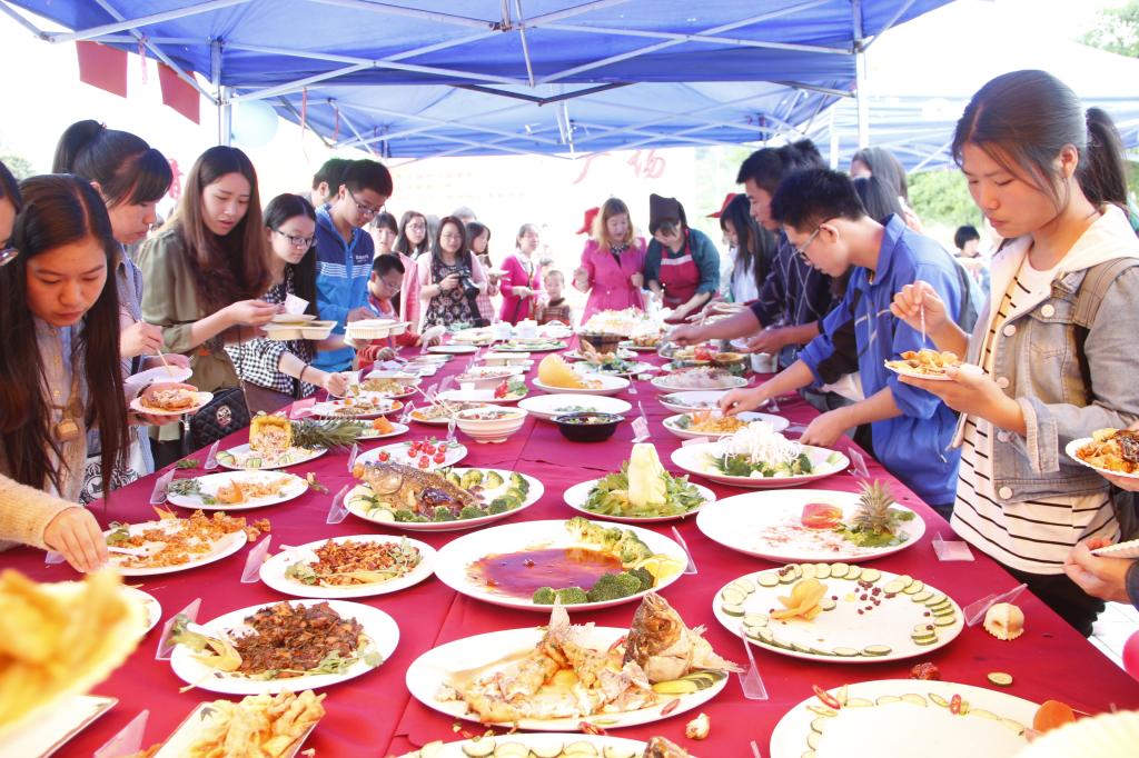 本屆食品科技文化節主要圍繞食品、生物專業特點,開展創新大賽成果展、品茶葉啤酒、OM咖啡茶吧體驗、顯微鏡下的世界、中醫養生館等13項活動,旨在提高學生的創新、創意、創業能力。獨具生工專業特色的“顯微鏡下的世界”,將實驗室“搬”到活動現場,工作人員現場示范倒平板檢測菌實驗,并講解了相關原理和實驗現象,同學們動手實驗觀測。生工學院重點創新創業項目--OM咖啡茶吧,由學生團隊創辦運營,該專業團隊自創的松餅、抹茶蛋糕、咖啡、奶蓋、奶茶等食品現場供學生品嘗。“福州大學食堂美食展”同樣受到熱捧,同學們排長隊品嘗粉蒸肉、手撕雞等美食,引得在場“吃貨”流連忘返。