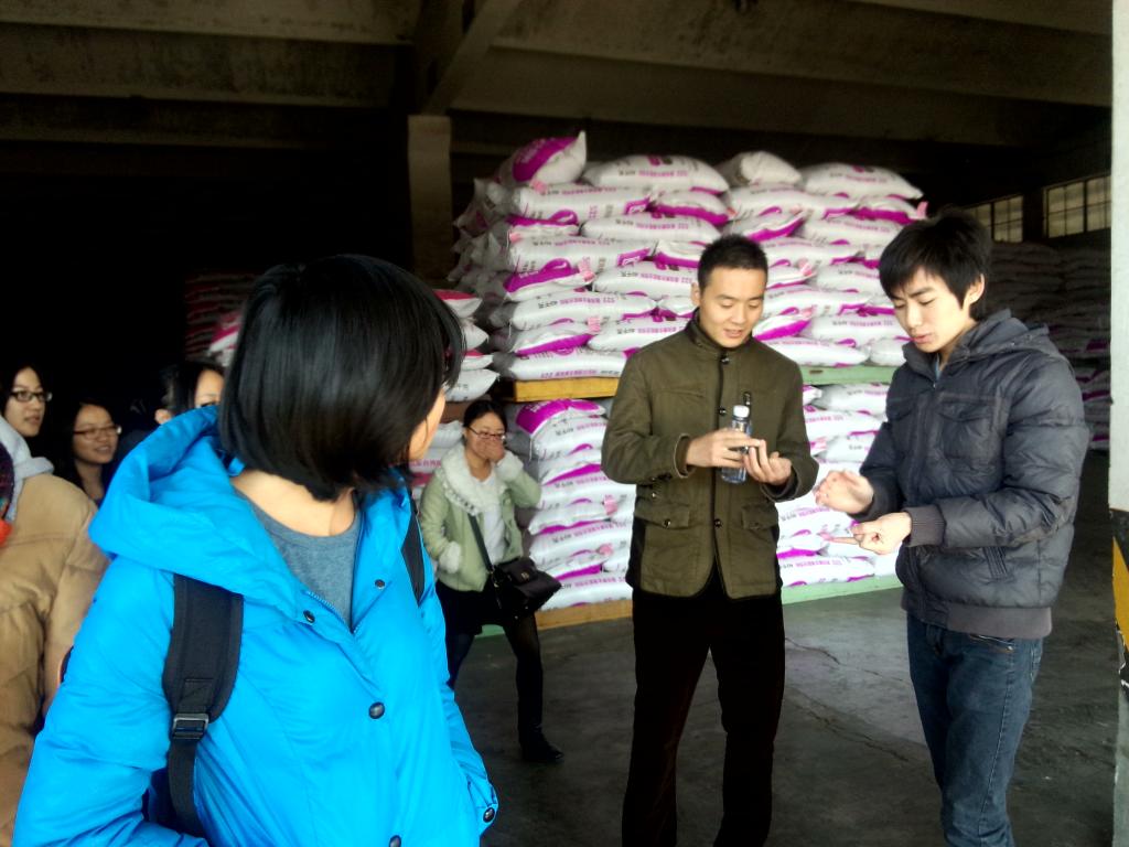 福州大福有限公司由泰國正大集團獨資興辦,是目前福建省最大的飼料,畜牧綜合企業。主要生產銷售畜,禽全價飼料,精料及艾維茵良種商品代雞苗。楊國輝帶領同學們參觀了飼料倉庫,并詳細介紹了生產流程。同學們積極提問,了解大福公司的營業范圍及員工們的日常工作。姚主任表示,目前公司更需要的是銷售型人才,如果是懂技術的銷售人才就更有優勢了。
