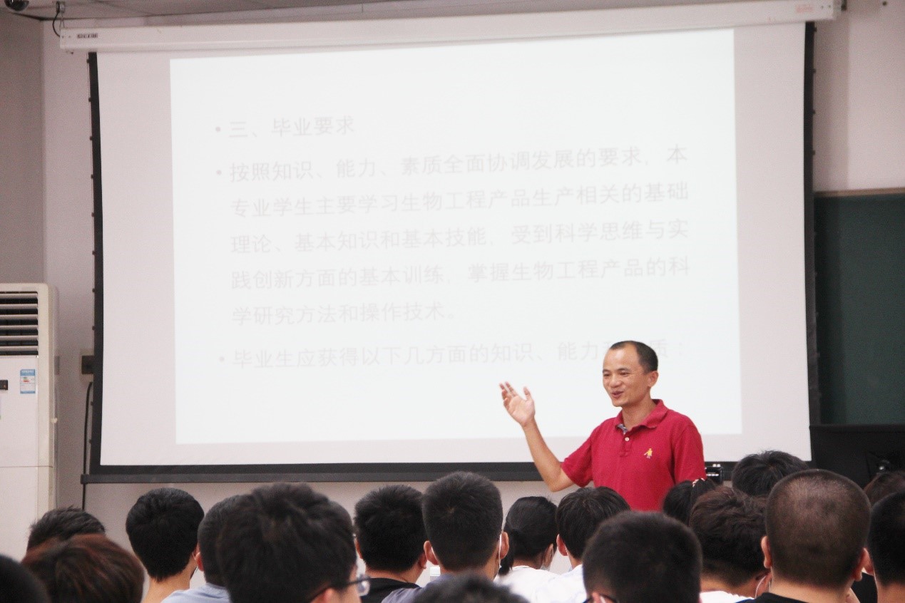 為了讓新生更加了解專業的學習特點與學習要求,更快地適應大學的學習生活,王航副院長為生物工程專業的同學講述了生物工程學科的發展歷程,同時向同學們講解了“什么是生物工程”“生物工程是做什么的”“科學與工程的含義”等問題,幫助新生們深入了解生物工程這個專業。并且王航老師跟同學們分享了生物工程的必修課程以及各個科目的學習方法以及本科生與研究生的就業率,給新生們的大學學習生活提供了參考方向。新生們認真傾聽,也積極提問與老師互動。