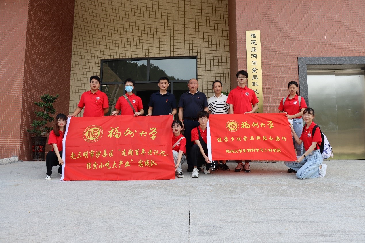 為促進產學結合,助力沙縣小吃產業化發展,提高沙縣小吃品牌層次,7月11日,我院黨委曹仁秋副書記、團委周越書記、輔導員廖加煒老師帶領福州大學赴三明市沙縣區“追溯百年老記憶,探索小吃大產業”實踐隊前往沙縣金古空港經濟開發區小吃產業園,走訪調研福建鑫滿園食品科技有限公司、福建省沙縣醉有才食品科技有限公司。