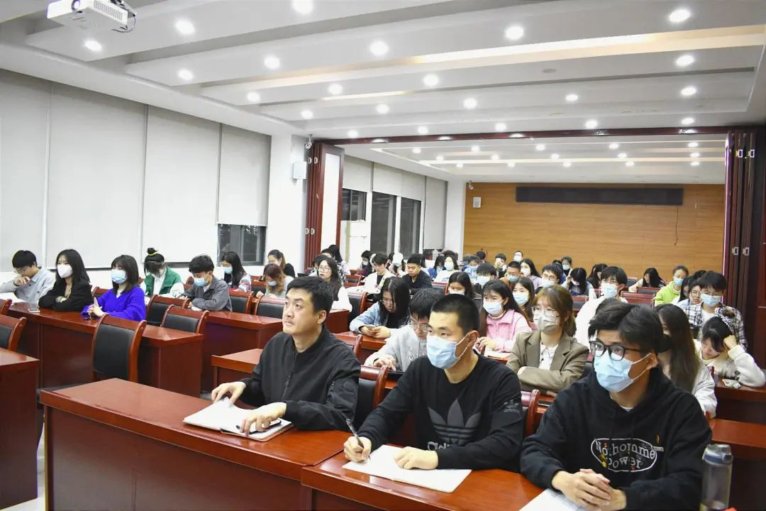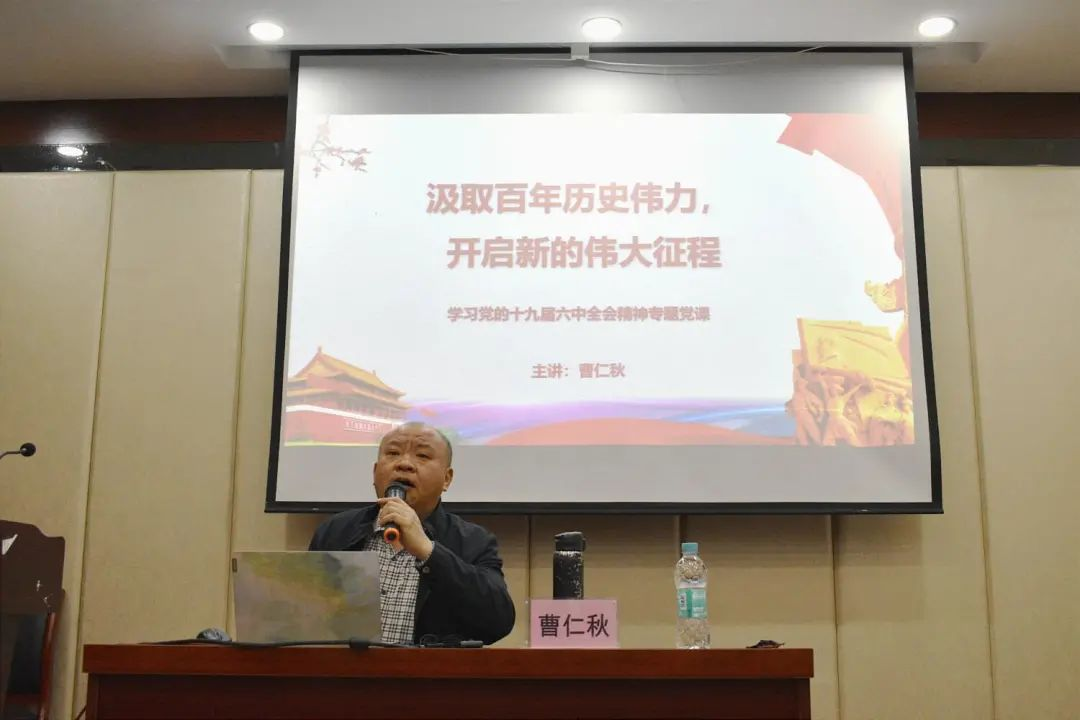 開班儀式結束后,曹仁秋副書記為本期青馬班學員做了《汲取百年歷史偉力,開啟新的偉大征程》為主題的專題黨課。曹仁秋副書記從明確的“兩個確立”重大意義、黨的百年奮斗歷史成就和歷史經驗、馬克思主義中國化新的飛躍、習近平新時代中國特色社會主義思想的核心內容、新時代的中國共產黨等五個方面與青馬班學員們分享了學習黨的十九屆六中全會精神的心得體會。同學們認真學習、仔細聆聽,受益匪淺、感觸良多。
