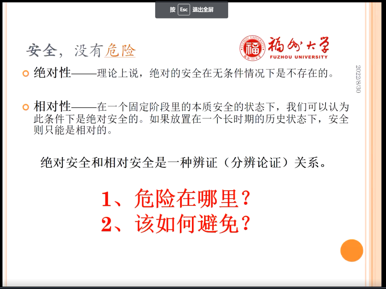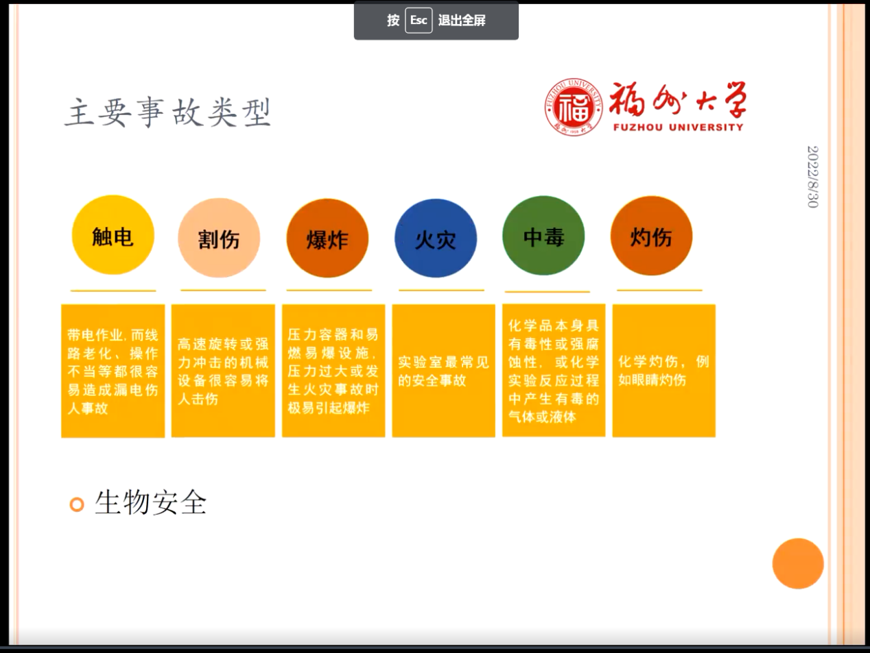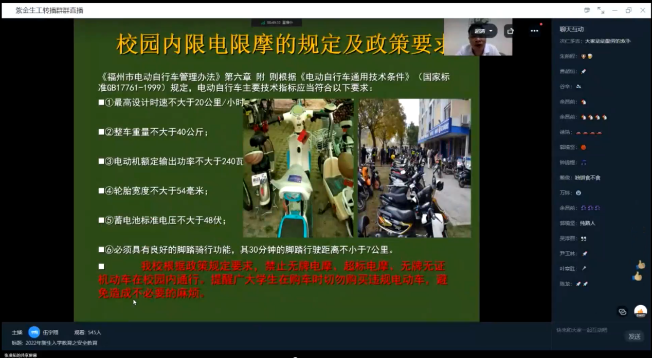 為幫助新生提高自我保護能力,盡快適應大學的學習氛圍和生活環境。8月29日至30日,校保衛處江宏老師、天津大學詹啟生教授、實驗室朱秋享主任通過線上授課方式為2022級本科新生開展了新生教育系列講座。