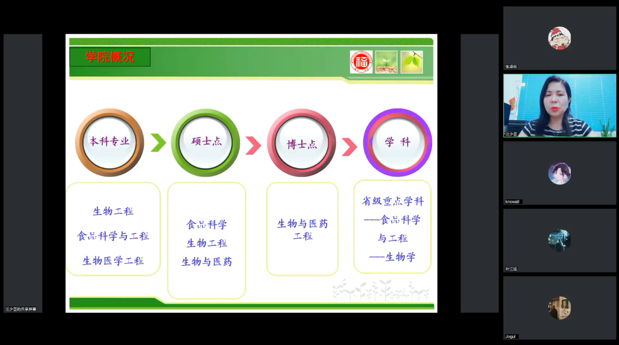 9月1日下午兩點,生工學院執行院長汪少蕓老師通過騰訊會議與2022級本科新生們進行了一次線上見面會。在會上,汪少蕓老師對2022級本科新生表達了真摯的歡迎。隨后,老師從生工學院的發展歷程講起,循序漸進的讓新生們了解了生工學院的主要情況以及生工學院中各專業的發展前景。最后,通過汪少蕓院長的講解,2022級本科新生們更加深入的了解了學院情況并對自己未來的發展有所暢想與規劃。