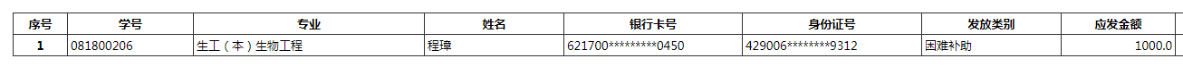 經學生本人申請,班級、學院評議,現對以下同學增補發放臨時困難補助金,名單如下: