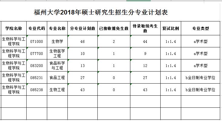 2018年研究生分專業招生計劃