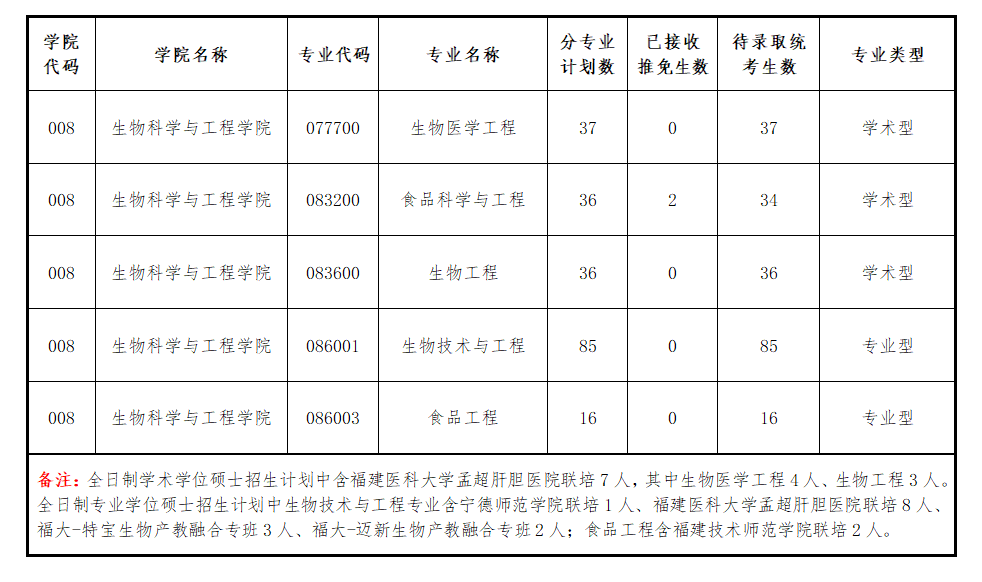 2023年生工學院碩士研究生招生分專業計劃表