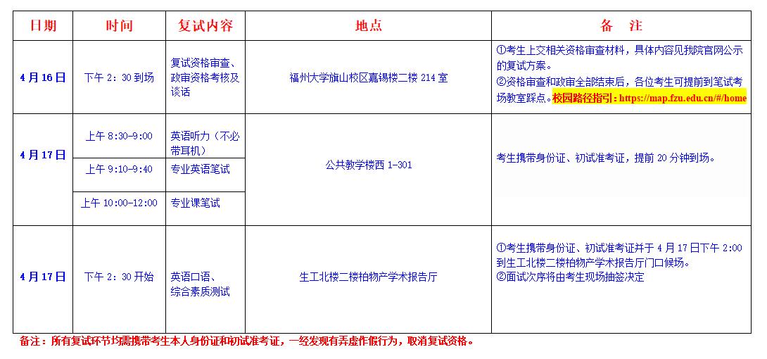 (一)我院2023年碩士研究生復試工作采用現場方式進行。復試地點為福州大學旗山校區嘉錫樓生物科學與工程學院。