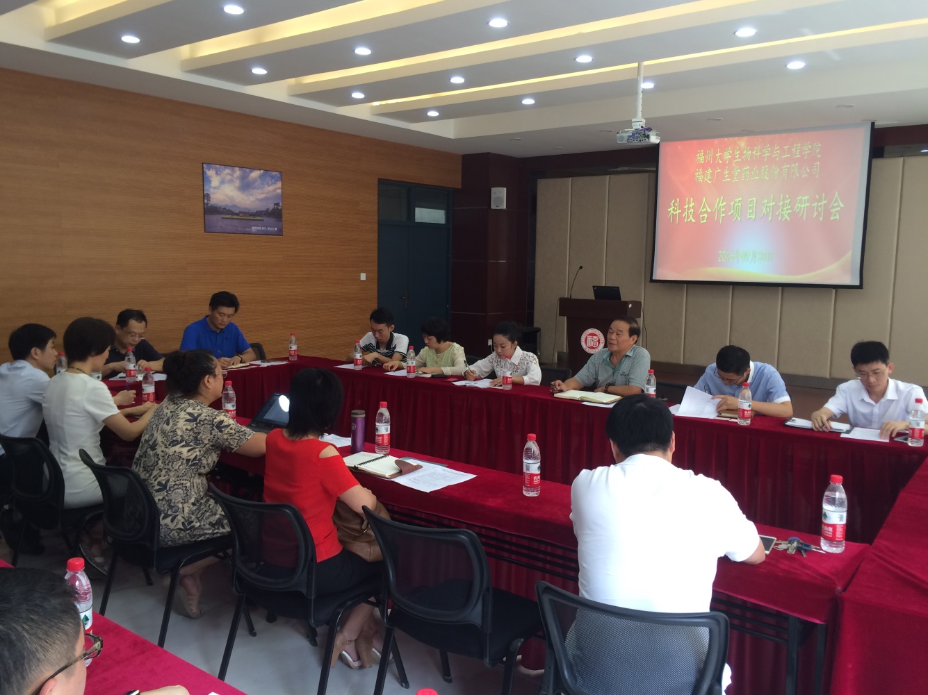 首先,賓主雙方分別介紹了各自單位的基本情況,雙方均表達了要進行深度科技合作的愿望。座談會的主要議題是進行科技合作項目對接,我院十位教師分別介紹了自己的研究方向以及準備與福建廣生堂藥業股份有限公司開展合作的項目情況;福建廣生堂藥業股份有限公司的研發人員也就他們關心的問題與我院教師進行了熱烈的探討。會場氣氛熱烈,雙方都對即將開展的合作充滿信心。