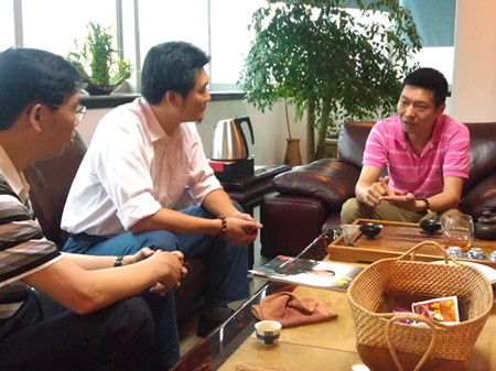 走訪得到學院88級 校友、華美公司總裁孔思軍先生的熱情接待。會談中,王群書記向孔思軍先生介紹了學校、學院發展的現狀,并對孔思軍先生長期以來對我院優秀大學生的資助表示 衷心的感謝,同時,也征求校友對母校辦學的意見和建議。孔思軍校友帶大家參觀了公司產品展示廳,向各位老師介紹了企業近況和發展愿景,并表示希望通過自己 反哺母校的實際行動,喚起更多校友關心、支持學院的建設和發展。各位老師在輕松愉快的氛圍中就如何搭建校友聯絡平臺、構建校友工作長效機制;加強校企合 作、促進大學生創業就業等方面與孔思軍先生進行了探討。