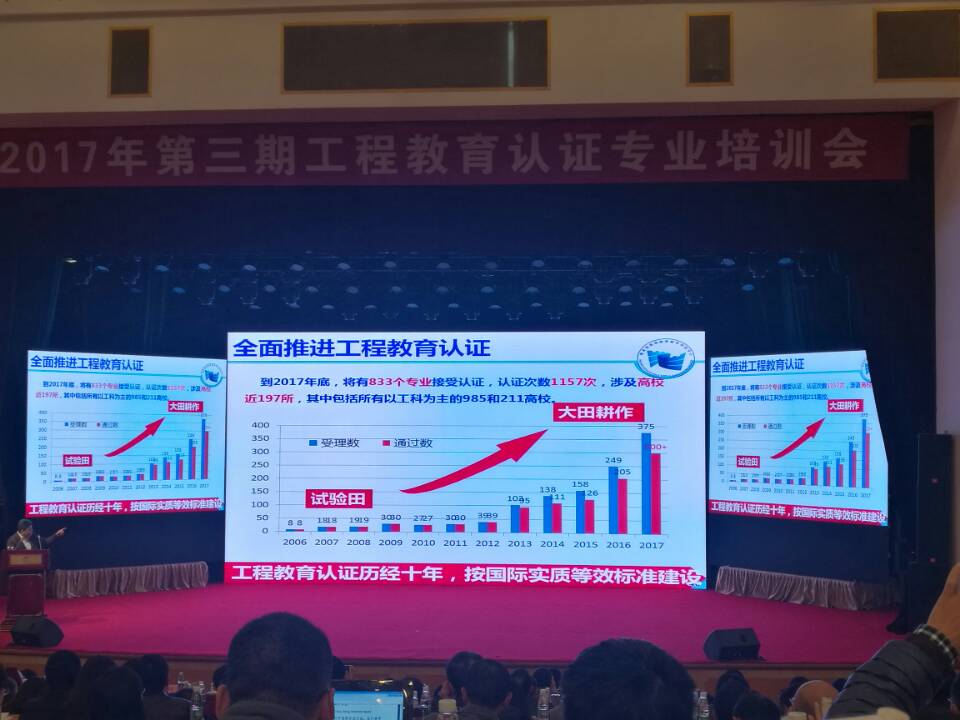 會上,教育部評估中心主任吳巖作題為《把握“六新”做好專業認證,建設一流本科專業》的主報告,對我國目前開展的專業認證工作進行了權威解讀。報告指出,2006-2016年十年間,工程專業認證領域規模不斷擴大,認證理念得到各高校、企業、學生的認可,越來越多的學校和專業參與進來,并從中獲益。同時,在人文社科領域的經濟、管理類專業也開展了認證試點。2017年,開展專業認證的學科領域逐步擴大,理學、農學、文學領域專業認證將全面啟動。隨著專業認證工作的持續開展,學生中心、成果導向、持續質量改進理念將向更多專業領域深入,各高校必須緊跟時代的需要,以成果為導向,堅持以學生為中心,轉變教學觀念,探索研究式、討論式教學,才能提高質量,適應社會的需求。