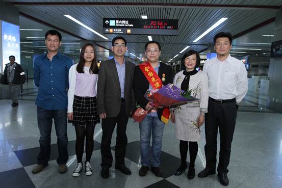 4月28日,慶祝“五一”國際勞動節暨表彰全國勞動模范和先進工作者大會在北京人民大會堂隆重舉行。習近平、李克強、張德江、俞正聲、劉云山、王岐山、張高麗等黨和國家領導人出席大會。大會對2968名在各行各業做出突出成就的全國勞動模范和先進工作者進行了表彰。我院楊黃浩院長榮獲“全國先進工作者”稱號,并與眾勞模和先進工作者一道受到習近平總書記的親切接見。28日晚,楊黃浩院長從北京載譽歸來,校人事處、校工會領導以及王群書記到機場迎接,向楊黃浩院長致以親切的慰問和熱烈的祝賀。