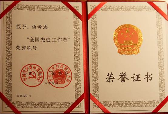 楊黃浩教授進京接受表彰