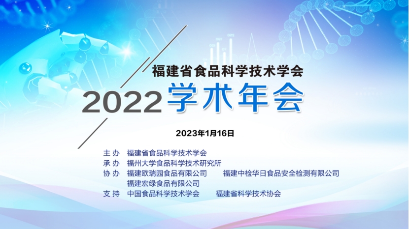 2023年1月16日,“福建省食品科學技術學會2022年學術年會”以線上形式召開。本次會議由福建省食品科學技術學會主辦、福州大學食品科學技術研究所承辦,福建歐瑞園食品有限公司、福建中檢華日食品安全檢測有限公司、福建宏綠食品有限公司共同協辦,同時得到中國食品科學技術學會、福建省科學技術協會支持。參會人員通過騰訊會議和學會視頻號直播進行觀看,總人數超過1400多人。