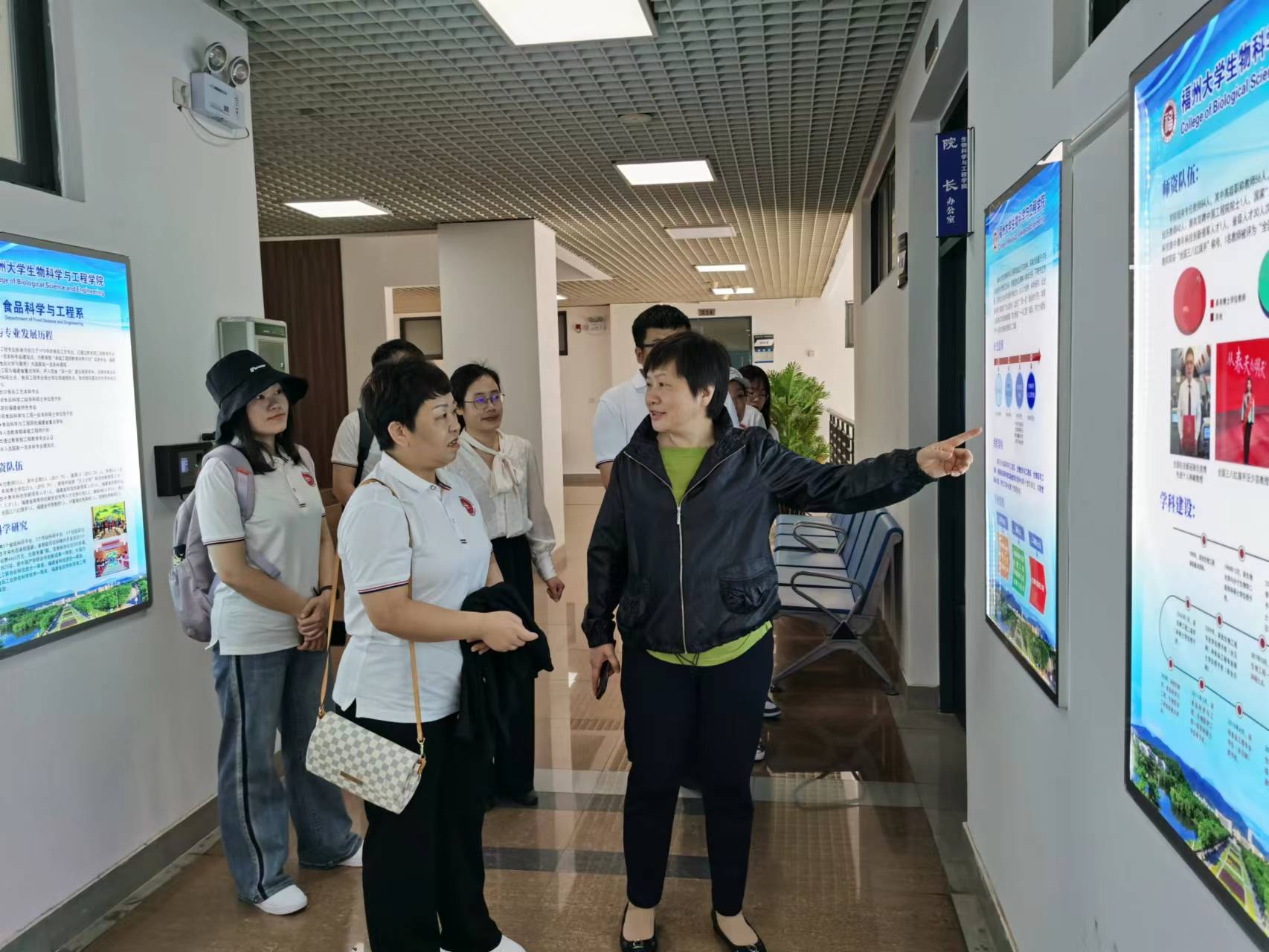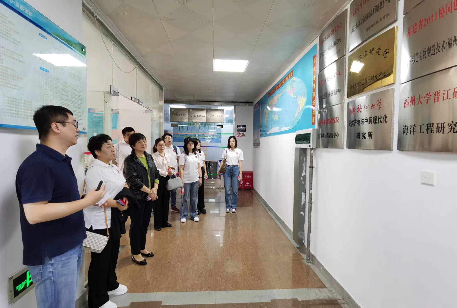王秀萍書記對山東大學師生一行的到來表示歡迎,并帶領大家參觀了學院的學科走廊,簡要介紹了學院的學科發展及當前研究領域。之后大家參觀了天然產物與中藥現代化研究所,謝友坪副所長向大家簡單介紹了研究所的歷史沿革,并詳細講解了研究所當前利用生物技術服務海洋經濟的思路以及取得的初步成效,謝老師結合墻上的圖片資料講解脈絡清晰,師生一行長時間駐足停留,不時提問請教。汪少蕓院長也向大家簡要介紹了學院海洋生物技術研究的其他相關團隊。