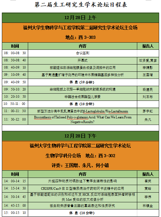 我院定于2019年12月28日舉辦生物科學與工程學院第二屆研究生學術論壇,屆時將舉辦生物學、生物工程、生物醫學工程、食品等學科分會場,歡迎學院全體師生踴躍參加。