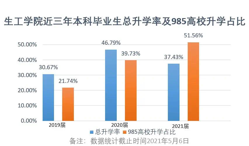 學院高度重視本科生的升學與就業工作,通過職業生涯規劃講座、升學就業指導專題講座、經驗分享會等方式幫助學生明晰未來發展方向,提供專業性指導。近三年來,學院本科生畢業率、就業率和升學率均保持較高水平,位列學校前茅,考取國內985高校研究生比例不斷提高,升學和就業質量不斷提升。