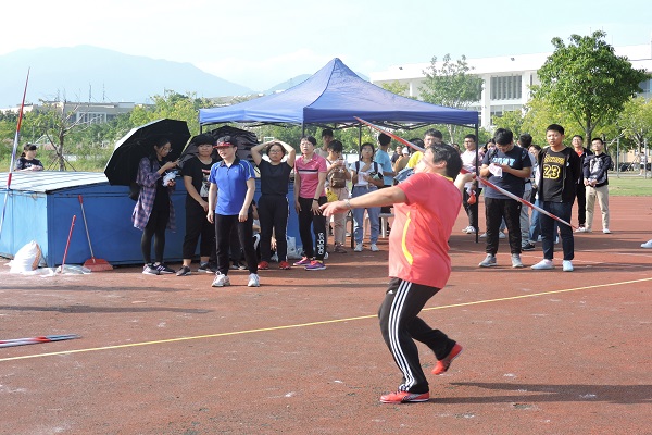 百二秦關終屬楚,苦心人,天不負。每一次拼盡全力的投擲都是對王能慧老師最好的贊美。標槍在天空中劃出了一道優美的弧線,也劃出了老師明媚的笑容,更劃出了滿堂驚嘆。標槍是一項考驗技藝的體育項目,沒有賽前成百上千次練習打下的扎實基礎,難以取得最后的成功。王能慧老師用第一名的好成績告訴我們,她是當之無愧的冠軍。