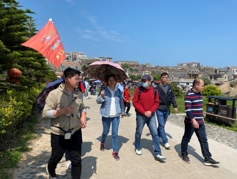 大家登上大練島,近距離觀看了全面通車數月的我國首座跨海公鐵兩用橋、世界最長跨海峽公鐵兩用大橋——平潭海峽公鐵兩用大橋,感受了“一橋飛架南北,天塹變通途”給百姓生活帶來的便利,體驗了基建工作者挑戰“建橋禁區”的偉大實踐。來到猴研島,一座高3米、寬5米的祖國大陸距臺灣島最近點標志石碑矗立眼前,上書“祖國大陸—臺灣島最近距離68海里中國·平潭”的朱紅大字,并雕刻了海峽兩岸位置圖。徜徉“中國美麗休閑鄉村”——北港村,高低起伏的石頭厝,透著濃濃的海港文化氣息,大家享受難得的午后休閑時光。當地村民依靠海島的地理環境和便利的交通條件,以發展漁業休閑旅游產業走向致富,從他們的臉上感受到國家惠農政策給漁村帶來的巨大變化。沿著美麗的環島路,我們來到長江澳沙灘,渚清沙白,遠遠地望過去,一座座風車排列得錯落有致,藍天、白云、碧海、風車組成的畫面吸引眾多的攝影愛好者流連忘返。信步沙灘,看潮起潮落,駐足石階,聽淺唱低吟。